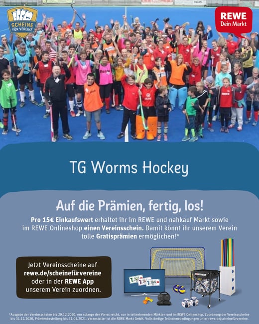 Durch die REWE-Aktion "Scheine für Vereine" haben aktuell alle Freunde der TGW Hockeyabteilung die Möglichkeit den Verein zu unterstützen. Pro 15€ Einkaufswert gibt es während der Aktion (bis zum 20.12.) einen "Vereinsschein". Dieser kann dann ganz einfach auf der REWE-Homepage oder in der App gescannt und der TGW Hockey zugeordnet werden. Die Scheine, die so gesammelt werden, kann der Verein dann in Prämien umtauschen, die für den Trainingsbetrieb genutzt werden.