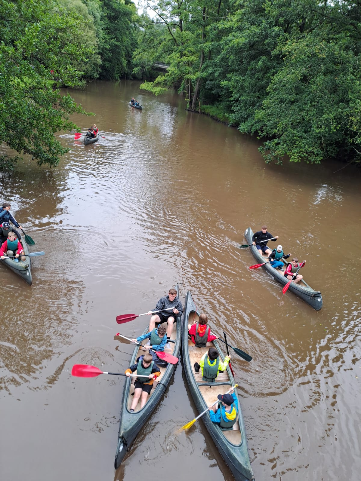 Doch der Ehrgeiz war geweckt, schließlich hatte niemand die Wasserfallüberquerung geschafft. Also erneut alle Kanus ins Wasser, neue Aufteilung, neues Glück! Am Ende der zweiten Runde stand fest: Ein Boot hätte es fast geschafft, kenterte aber! Sehr zur Freude der Jungs war es das Trainerboot. 😊